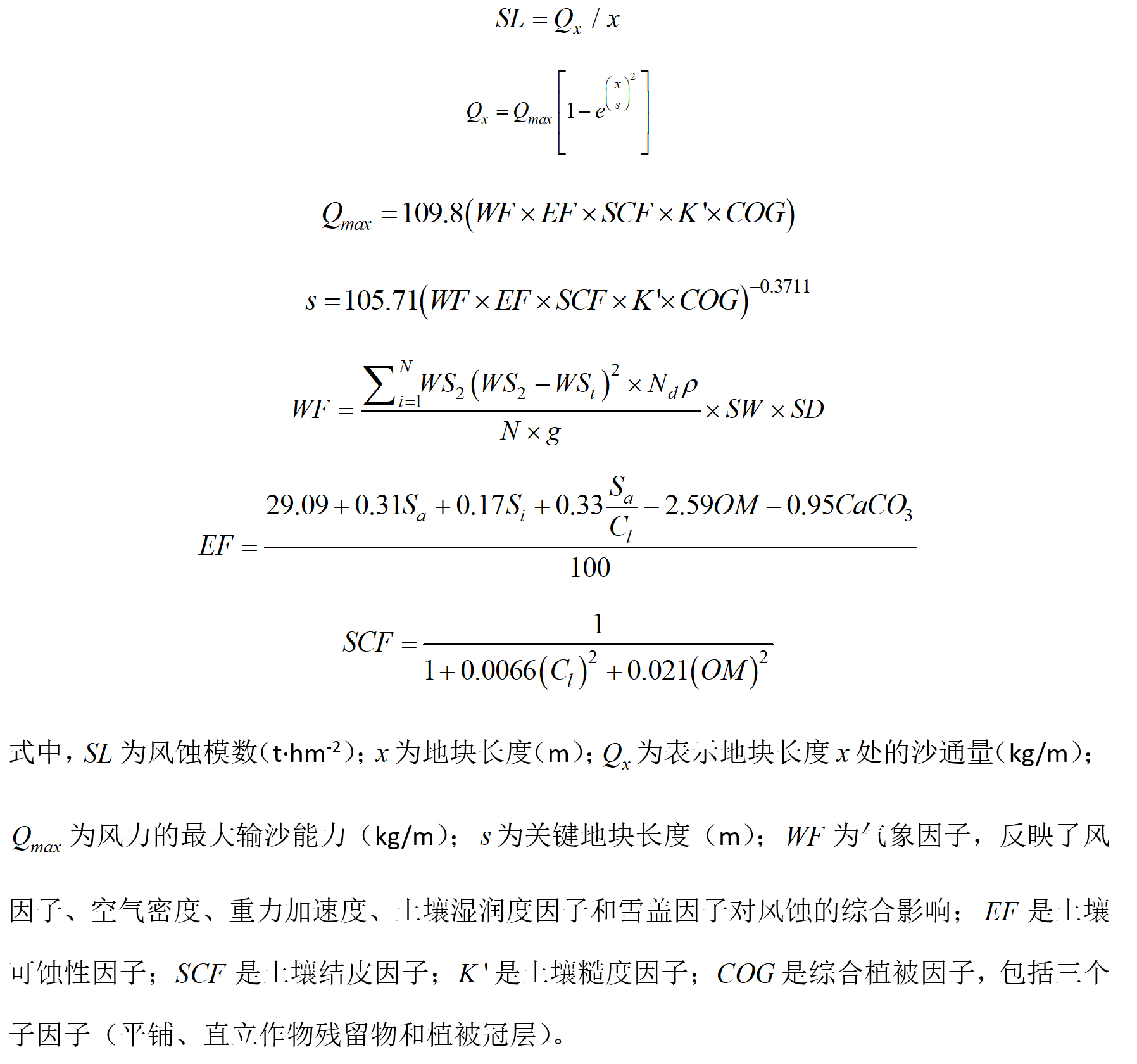 风蚀模数是是在考虑气候条件、植被状况、地表土壤的粗糙度、土壤可蚀性和土壤结皮的情况下,利用修正风蚀方程(Revised Wind Erosion Equation, RWEQ)定量估算土壤风蚀量。