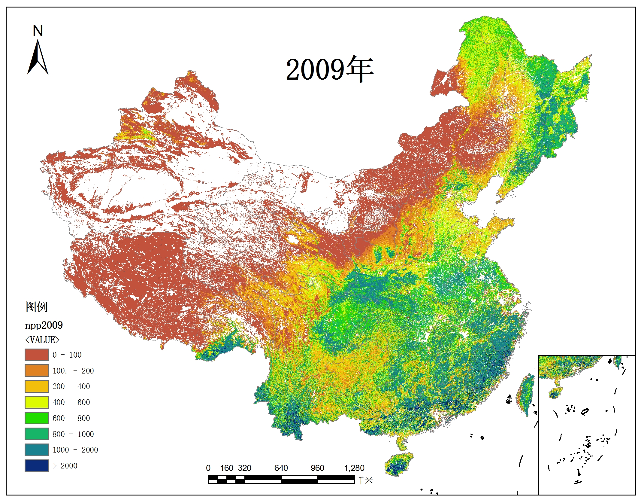 它是植物光合作用有机物质的净创造,作为表征陆地生态过程的关键参数,是理解地表碳循环过程不可缺少的部分,是一个估算地球支持能力和评价陆地生态系统可持续发展的一个重要指标。因此,国际地圈-生物圈计划(IGBP)、全球变化与陆地生态系统(GCTE)和京都协定(Kyoto Protocol)等把植被的NPP研究确定为核心内容之一。我国人多地少,资源相对缺乏,对NPP的研究就显得更为迫切和重要。