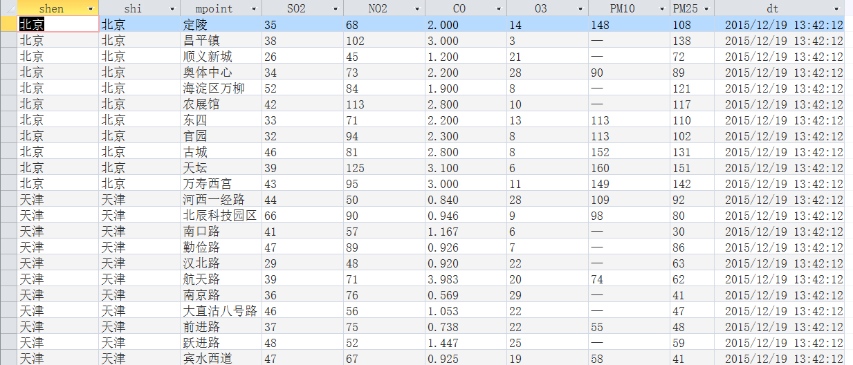 城市空气质量监测数据